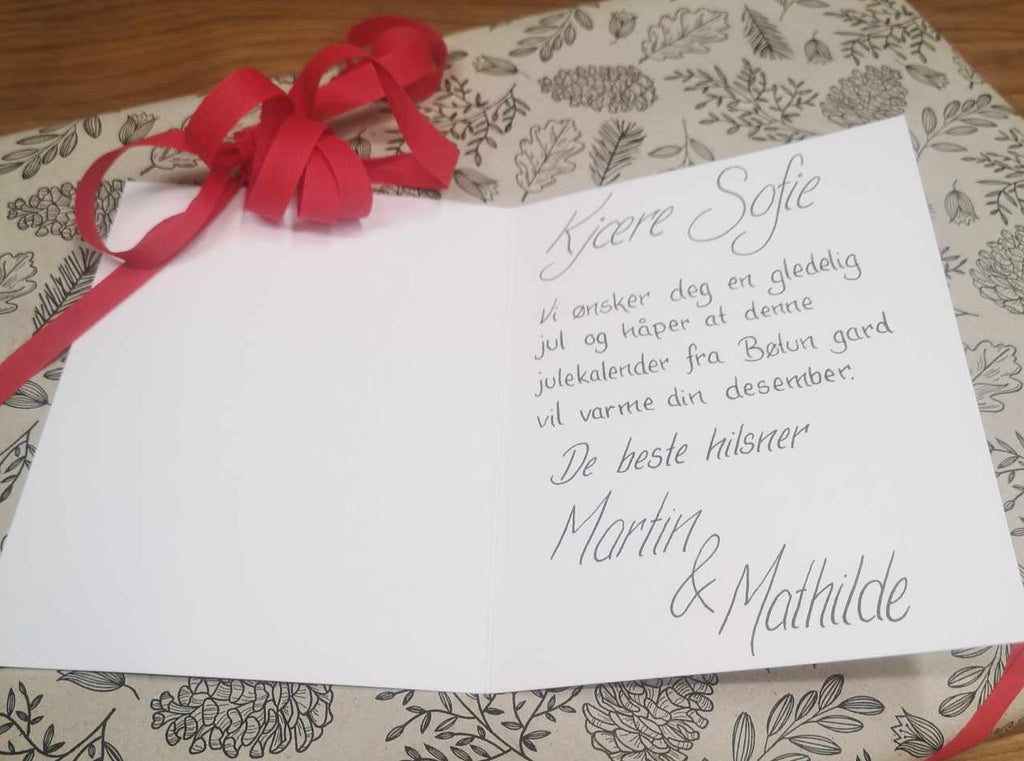 Ønsker du å sende et av våre produkter som gave, pakker vi det gjerne fint inn. Du kan skrive en personlig hilsen i kommentarfeltet i handlekurven: "SPESIELLE INSTRUKSJONER FOR SELGER", så skriver vi den inn med pen skrift. Max. lengde på tekst er 3 linjer hvis du bestiller fra pc og 5 linjer hvis du bestiller fra mobil.