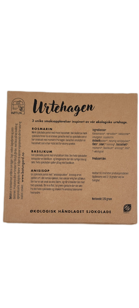 Dette er esken for deg som liker å utforske nye smaker. Med utgangspunkt i urtehagen har vi skapt 3 ulike stykker som på hver sin måte tar det krydret fra vår økologiske urte med inn i sjokoladens fortryllende verden.